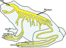 Балықтардан бастап жүйке жүйесі ми және жұлын болып екі ірі бөлімнен тұрады (2-сурет). Ми бассүйектің ішінде орналасқан. Ол бес бөлімнен тұрады: алдыңғы ми, аралық ми, ортаңғы ми, мишық, сопақша ми (3-сурет). Сопақша ми омыртқа жотасының өзегінде орналасқан жұлынмен жалғасады. Ми мен жұлын көптеген жүйке тармақтары арқылы балық денесінің барлық мүшелерімен байланысады.