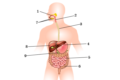 Суретте 4 және 3 сандарымен көрсетілген асқорыту мүшелерінің атауы