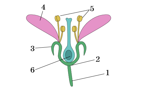 Суретте №4, №3 және №6 сандарымен көрсетілген гүл бөлімнің атау(-лар)ы