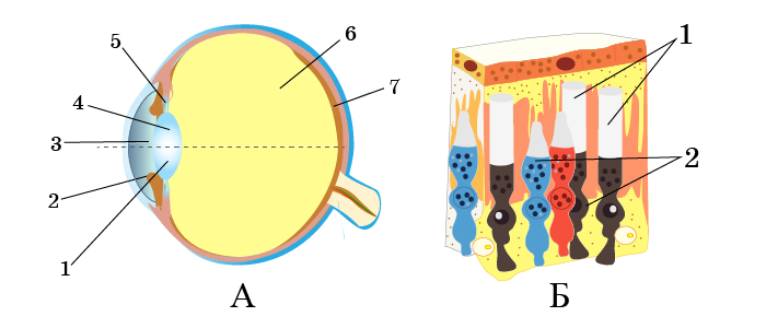 Б-суретіндегі №1 санымен беріген көз құрылымының сипаттамасы