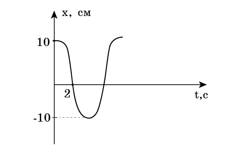 Суретте бойлық толқынның ығысуының уақытқа тәуелдігі көрсетілген. Толқын 4 м/с жылдамдықпен тарайды. Қарама-қарсы фазада тербелетін ең жақын екі нүктенің арақашықтығын анықтаңыз.