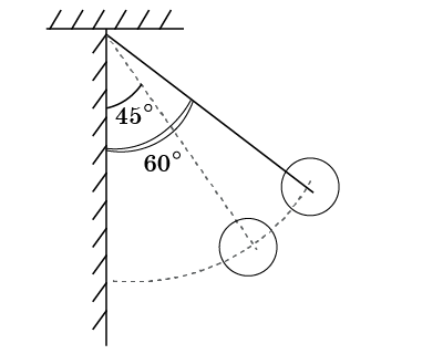 Жіпке ілінген шарды вертикальдан 60°-қа ауытқытып жібереді, шарик вертикаль қабырғаға соқтығысып, қабырғадан 45°-қа ауытқыған. Соқтығыс кезінде шар энергиясының қандай бөлігін жоғалтты?