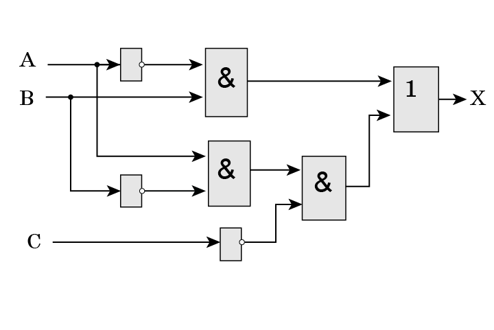 А, В, С айнымалыларының қандай мәндерінде логикалық схема «ақиқат» мән қабылдайтынын анықтаңыз.