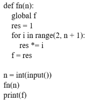 Программаға сәкес n айнымалысы мәндері және алынатын нәтиже арасындағы сәйкестікті анықтаңыз.