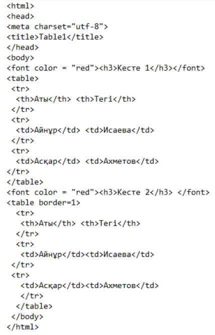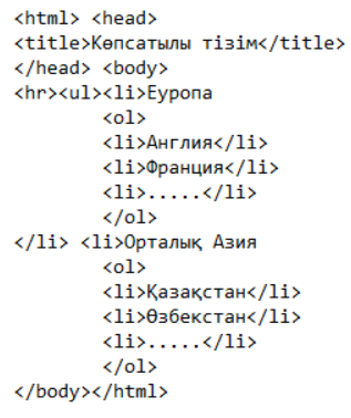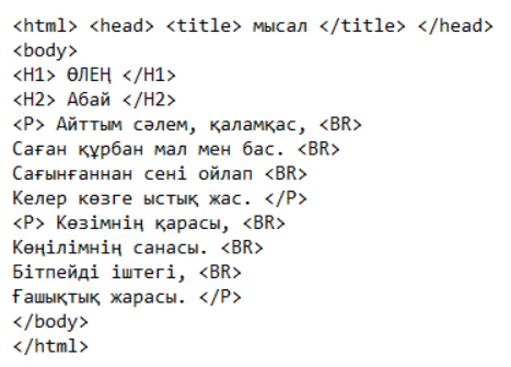 HTML тілінде берілген кодтың нәтижесін анықтаңыз.