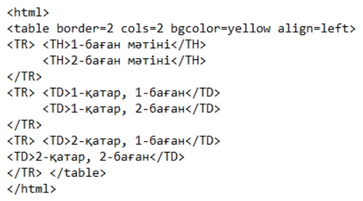 HTML-де шектес бағандар ұяшықтарын біріктіретін атрибут атауы