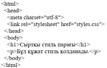 Берілген HTML код және CSS стиль түрлері арасындағы дұрыс сәйкестікті анықтаңыз
