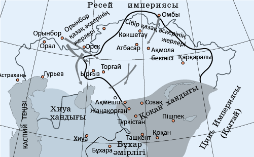 Картаны пайдаланып, Кенесары Қасымұлы бастаған көтеріліс қамтыған аумақты анықтаңыз
