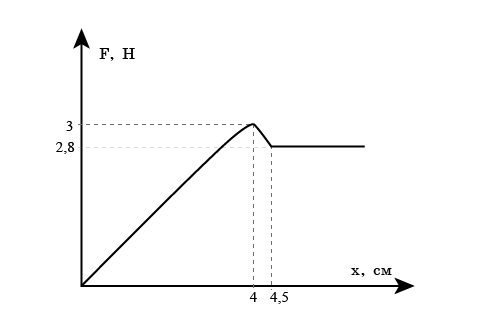 Замеряя величину, приложенной силы в зависимости от перемещения динамометра получил следующий график:
