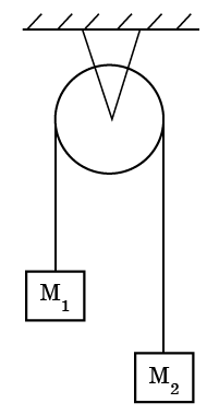 С каким ускорением двигается система тел, изображенных на рисунке, если масса первого тела в четыре раза меньше второго?