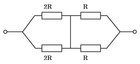 Определить эквивалентное сопротивление цепи, изображенной на рисунке. Cопротивлением соединительных проводов пренебречь.