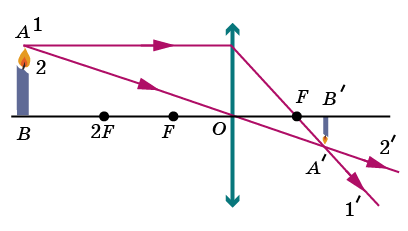 Согласно рисунку ниже, дайте характеристику полученного от собирающей линзы изображения предмета: