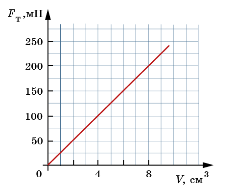 Зависимость силы тяжести, действующей на песок в песочных часах, от его объема представлена на рисунке.