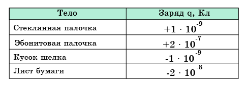 Из таблицы определите какие тела были наэлектризованы трением друг о друга.
